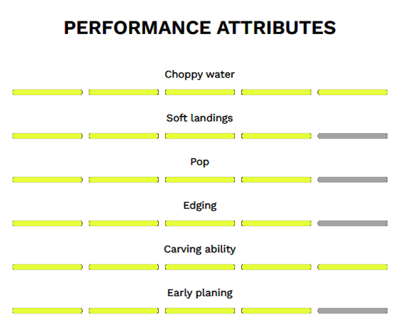 Pre jazdcov, ktorí to so zábavou myslia vážne. Jednoduchá a plynulá jazda, ľahká, svižná a veľmi citlivá na odozvu. Hladká v akýchkoľvek vodných podmienkach, ľahko ovládateľná a prekvapivo výkonná. Je obľúbenou doskou profesionálnych jazdcov a najrýchlejšou cestou, ako sa posunúť z akejkoľvek úrovne na plný výkon.